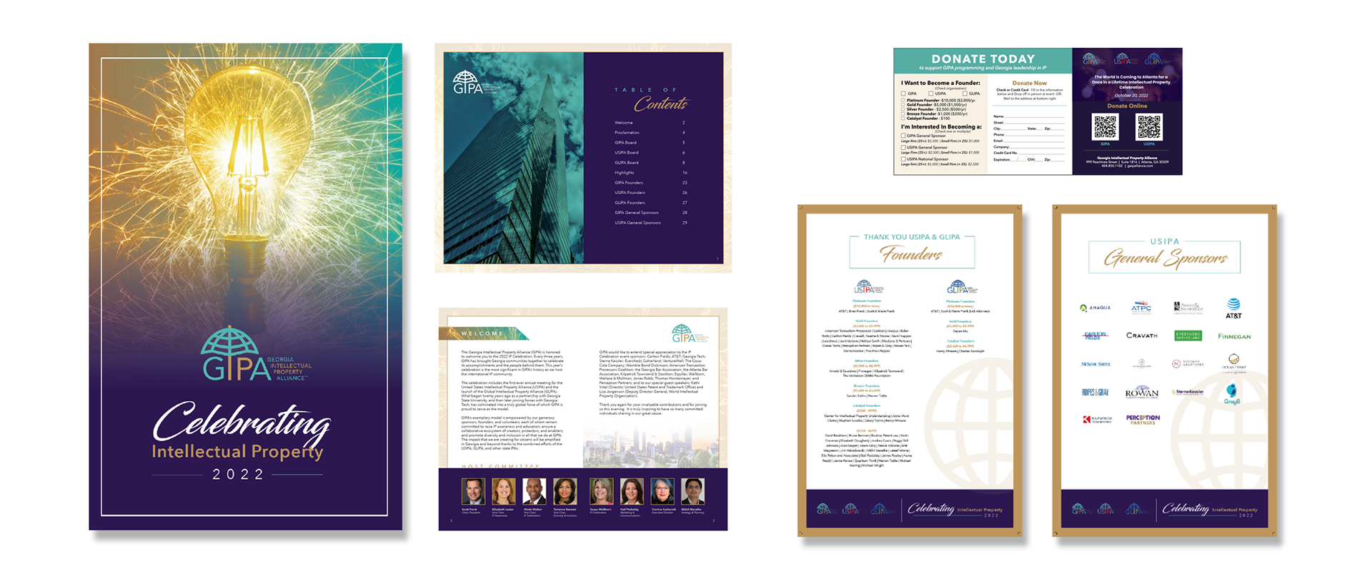 GIPA exists to provide the resources, expertise, and connections to ensure people’s ideas can become a profitable reality. This organization hosts an annual event celebrating Intellectual property and needed branded event designs for the program booklet, display posters, donation cards, name badges. Poster Designs and certificates were also created for different events.