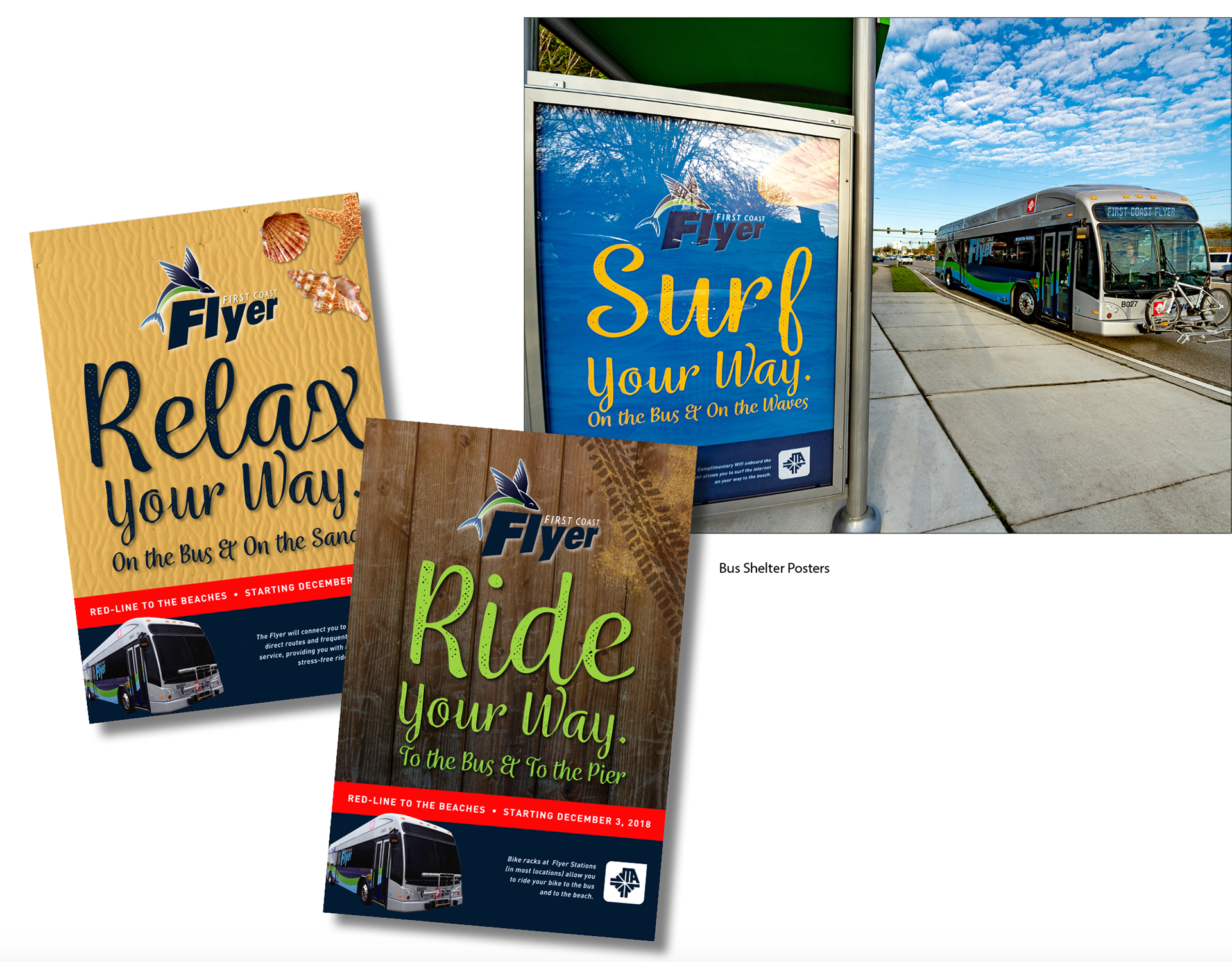 The First Coast Flyer is JTA's premium Bus Rapid Transit or BRT service. The First Coast Flyer offers customers a frequent, limited stop, easy and reliable way to get around Jacksonville. In an effort to promote their new Red line to the beaches, this campaign was developed. The First Coast Flyer Red line has 22 miles of uninterrupted coastline from Atlantic Beach, Neptune Beach, and Jacksonville Beach.
